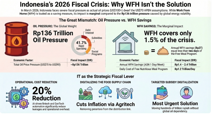 Kebijakan 1 hari WFH per minggu sering kali digaungkan sebagai solusi instan untuk menekan konsumsi BBM nasional hingga 20%. Namun, sebagai praktisi IT yang sudah melihat berbagai siklus krisis sejak 1993, saya melihat ada yang lebih fundamental daripada sekadar "memindahkan meja kerja ke rumah".